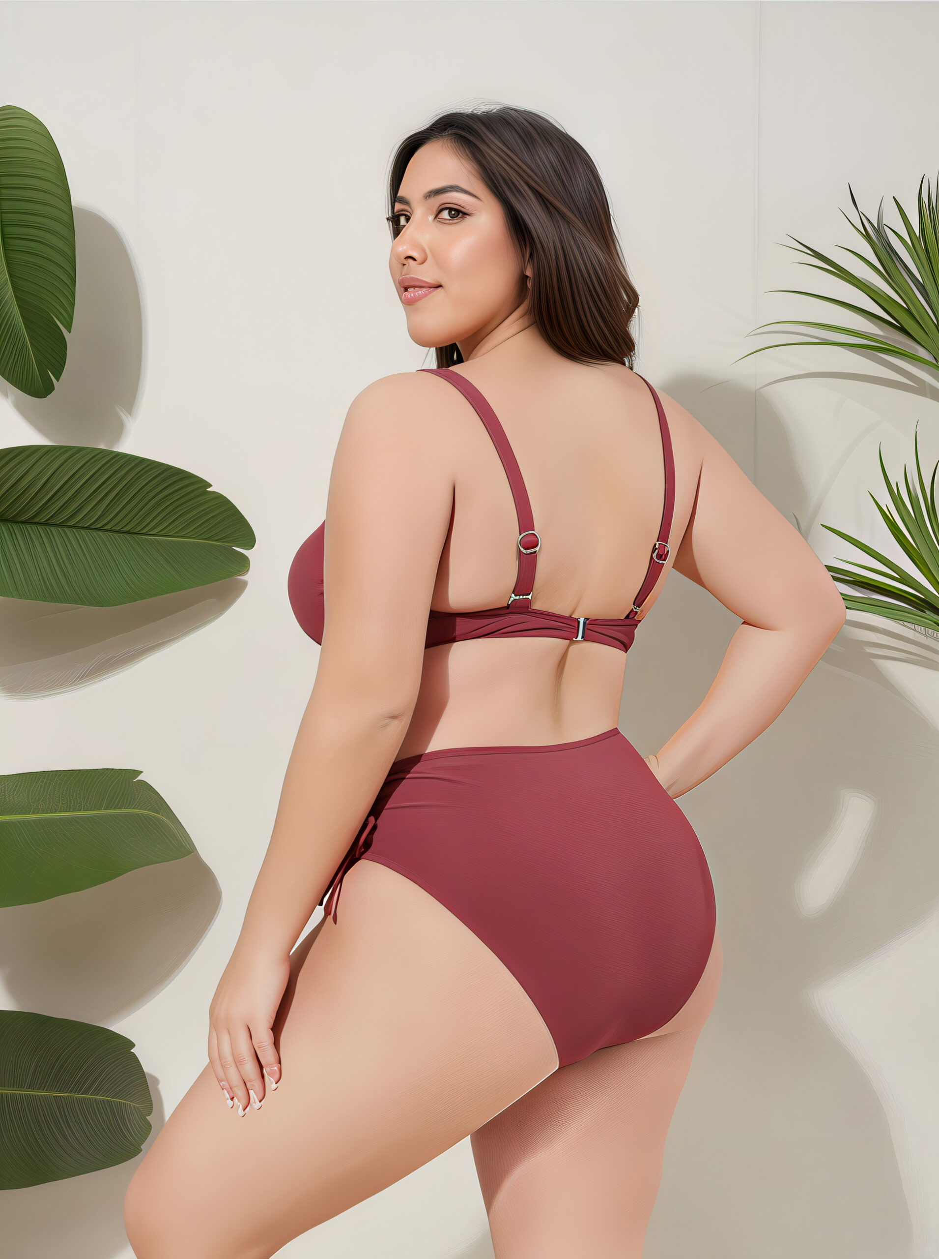PLUS SIZE женски костим за капење – бордо и тегет боја